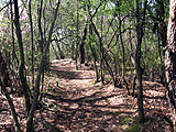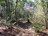 宝が池公園、桜の森の東側からつながる山間園路を歩いて途中から脇線へ。しばらく山を上ると見晴らしのよい場所へ出ました。向こうに比叡山を眺めて、少し休憩をしてから先へ進みましょう。