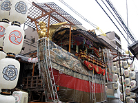 | 船鉾の南面です。北側同様に駒形提灯が飾られています。 | ![]() |