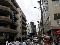 | 綾傘鉾から、さらに綾小路通を東に進みます。すぐにシルクホールのある産業会館の裏手に出てきます。ここはもう室町通の情景です。 | ![]() |