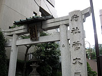 | 高辻通を西に進み始めてすぐ北側に鳥居があります。菅大臣神社とあり、菅原道真公のお屋敷があった地域だそうです。早速、寄り道をして、そちらへ向かいます。細い路地(ろおじ)を進むと先が少しひらけて東側に鳥居があります。この路地は若宮通の延長線上にあるため若宮通だと思うのですが……。 | ![]() |